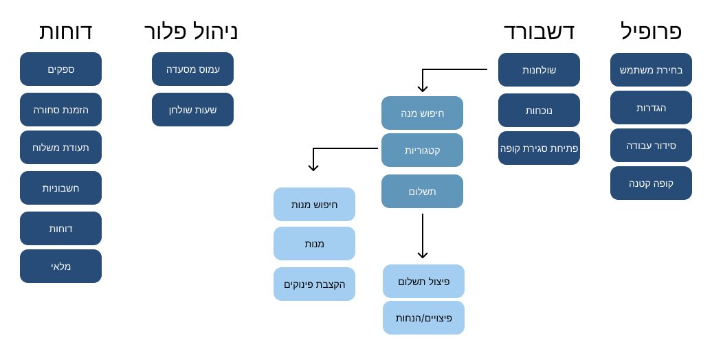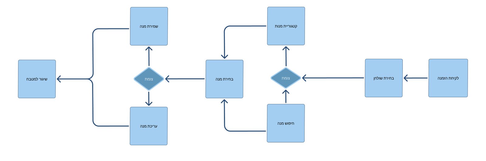 - בחירת קטגוריות ברורות (ראשונות, עיקריות, שתייה).