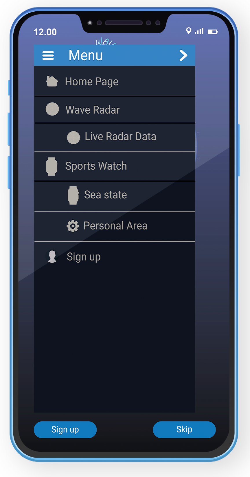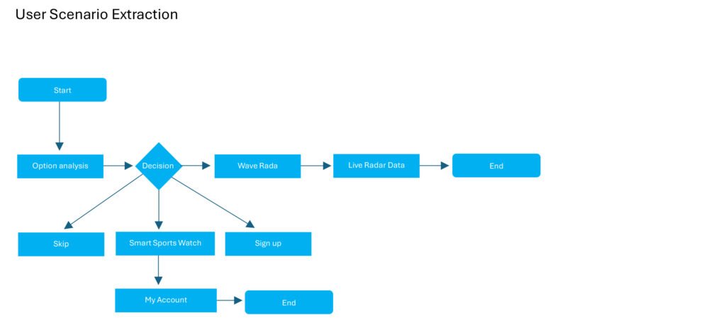 I realized that users tend to be impatient and want information immediately. Therefore, I designed a simple and accessible interface, which includes clear buttons for key functions such as the wave radar and connection to the sports watch. This way, users can quickly access the required information without wasting time on unnecessary searches.