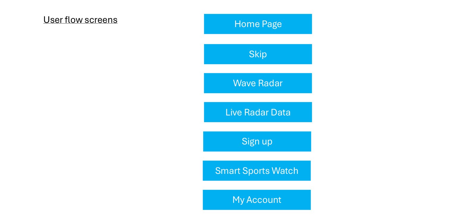 I realized that users tend to be impatient and want information immediately. Therefore, I designed a simple and accessible interface, which includes clear buttons for key functions such as the wave radar and connection to the sports watch. This way, users can quickly access the required information without wasting time on unnecessary searches.